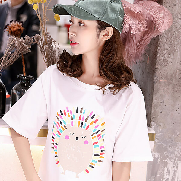 Thân áo thiết kế một mảng hình chữ nhật có chữ in nổi bật, khỏe khoắn và dễ phối cùng nhiều trang phục khác nhau, thể hiện gu thời trang của người mặc. Màu đen tươi sáng cho bạn gái dễ chọn lựa cho phù hợp với sở thích của mình. Những cô gái tuổi teen thích kiểu áo có nhiều họa tiết hoạt hình trẻ trung, bắt mắt cùng màu sắc tươi sáng. Còn với người ở độ tuổi trưởng thành hơn thì áo thun cần phải thời trang nhưng từng chi tiết phải được may tinh tế, màu sắc phù hợp với từng hoàn cảnh.
